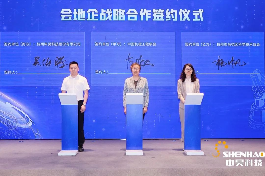 在智能制造數(shù)字化轉(zhuǎn)型與數(shù)字價值主題論壇中,申昊科技吳海騰副總經(jīng)理代表公司與中國機械工程協(xié)會、杭州市余杭區(qū)科學(xué)技術(shù)協(xié)會簽署了會地企戰(zhàn)略合作協(xié)議。