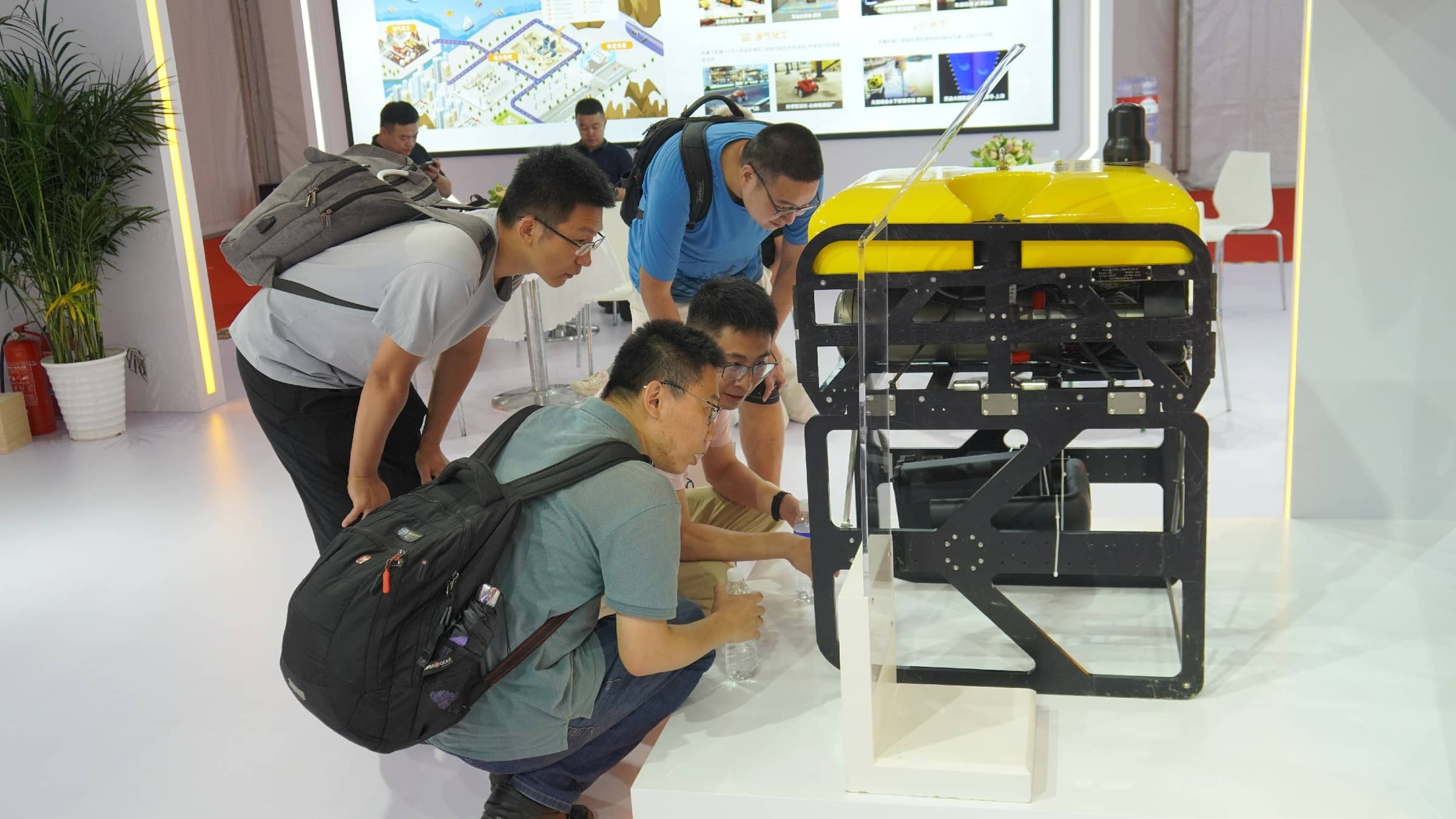 申昊科技展示的申龍一號水下機器人是展臺亮點之一。公司以“海陸空隧”戰(zhàn)略目標,向海底世界進軍。該機器人負載能力強,適合搭載水下作業(yè)機械手進行救助打撈工作。其強大的運動能力可以在作業(yè)水域快速運輸緊急消防物資;其在線圖像增強和實時目標識別攝像系統(tǒng),可以更加清晰的獲取水下影像,方便進行監(jiān)測和圈定有效目標物。吸引了眾多觀眾興趣和咨詢。