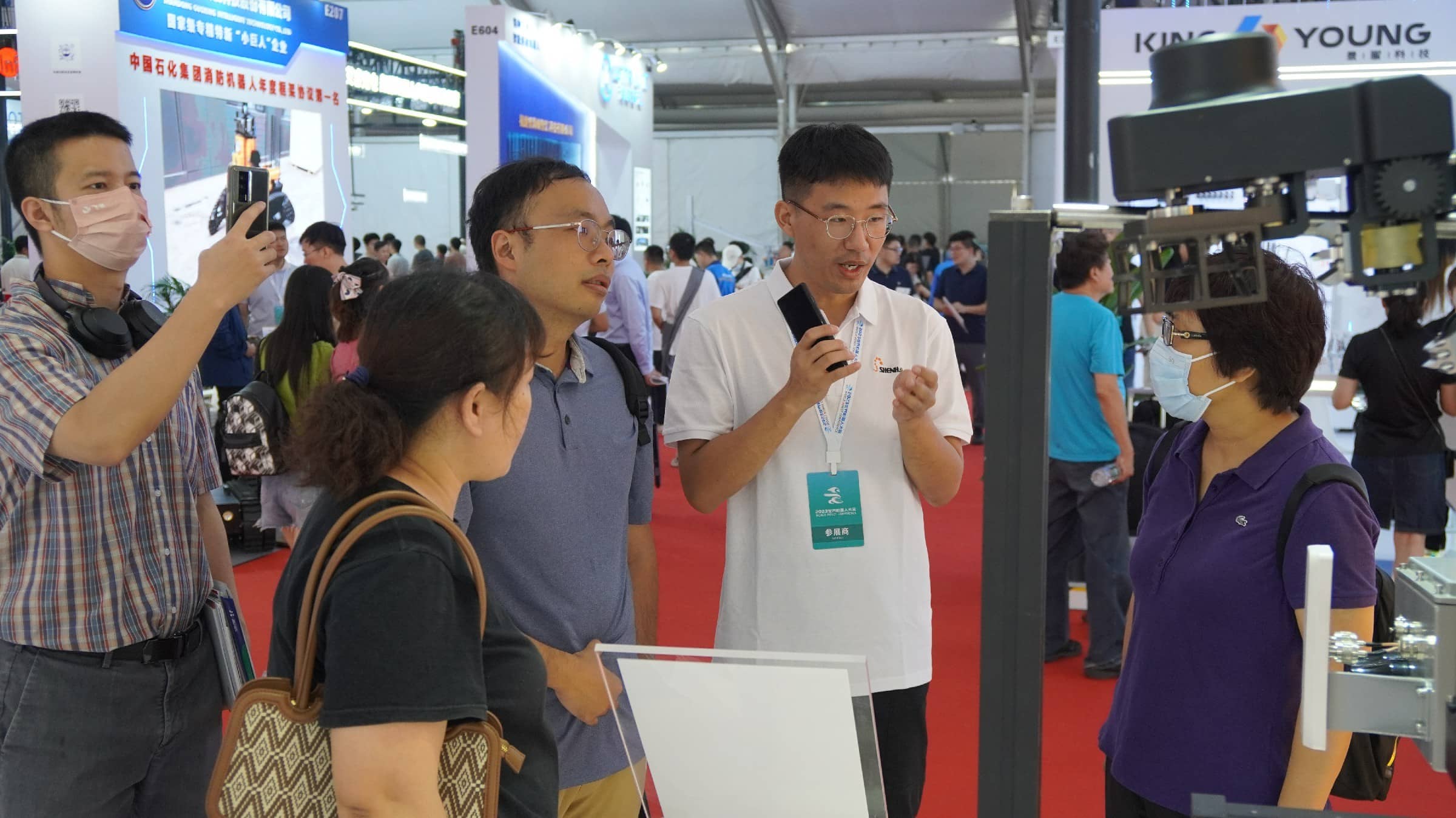 申昊科技的展區(qū),一臺臺智能機器人在展臺上展現(xiàn)出高度靈活的動作和智能感知能力,引得現(xiàn)場觀眾紛紛駐足觀看。
